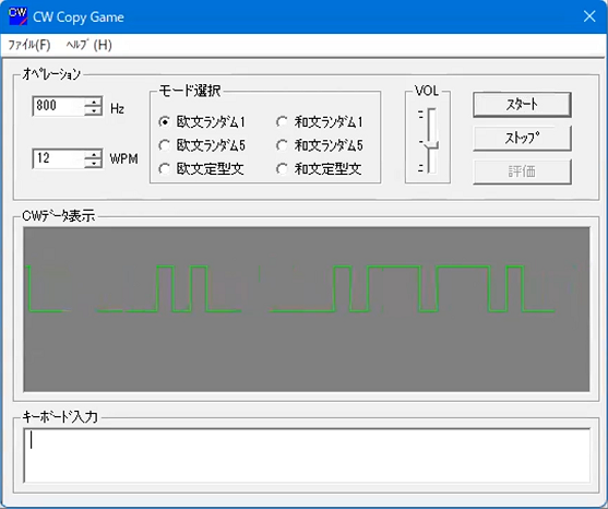 CW音を聞いて符号文字を紙に書いてコピーし、評価ボタンで回答が出るので答え合わせする事が可能です。