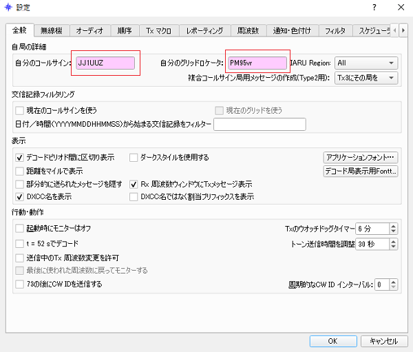 JTDXの設定をおこないます。運用しながら、自分に合った設定に変えてみましょう。