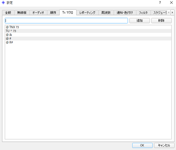 5.Txマクロ「Tx Macros」は、ディフォルト設定とします。