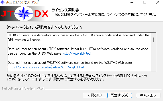 ダウンロードしたJTDXをインストールします。正常にインストールが完了したら、JTDXの設定を行います。