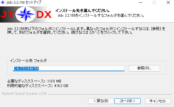1.「jtdx-2.2.156-corrected-win64.exe」をインストールします。