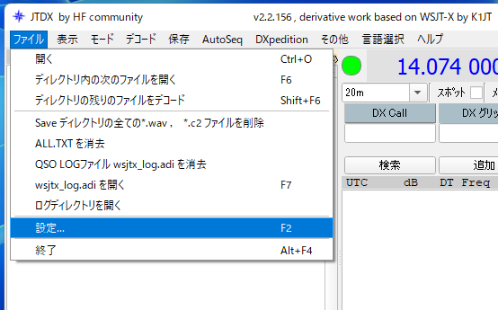JTDXが起動中にファイル「File」→設定「Setting」をクリックします。