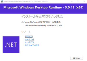 • windowsdesktop-runtime-5.0.11-win-x64を実行する