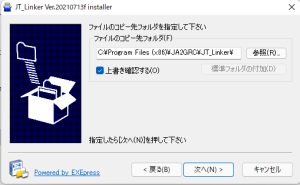 1.「JT_Linker_20210713f_setup.exe」を実行し「次へ」をクリックします。