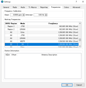 | 144MHz、430MHz、1200MHzでFT8を運用するには、WSJT-Xに選択する周波数を追加する必要があります。 |