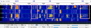 | (1)高調波(倍音) 高調波(倍音) がかなり強烈に発射されている。ALCとか出力の問題ではありません。WSJT-X / JTDXともに高調波を防ぐ手段があります。 |