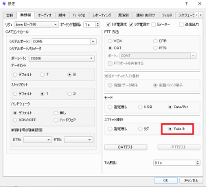 (2)JTDXの対策設定 設定の無線機の項目で「Fake it」設定にすれば解決できるようです。 |