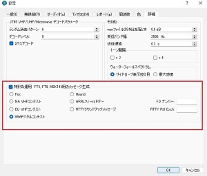 (1)設定の詳細の特別な運用を有効にする WWデジタルコンテストの設定を行い、OKをクリックします。これで、WWコンテストモードになりました。このモードにすると、コンテスト・ログ画面がポップアップされます。 |