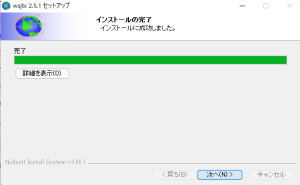 6.インストールの完了が表示されたら「次へ」をクリックする。 |