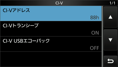(1)IC-705の「SET」->「外部端子」->「CI-V->CI-Vアドレス」を選択し、88hに設定する。 ちなみにCI-Vボーレートの設定は無いようです。 |