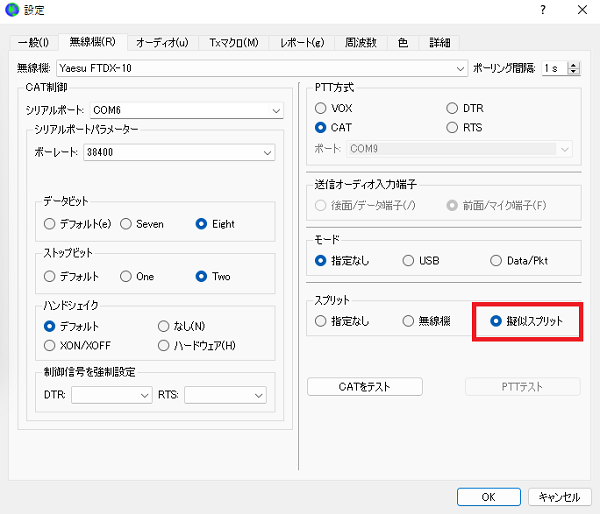(3)WSJT-Xの対策設定 設定の無線機の項目で「疑似スプリット」設定にすれば解決できるようです。 |