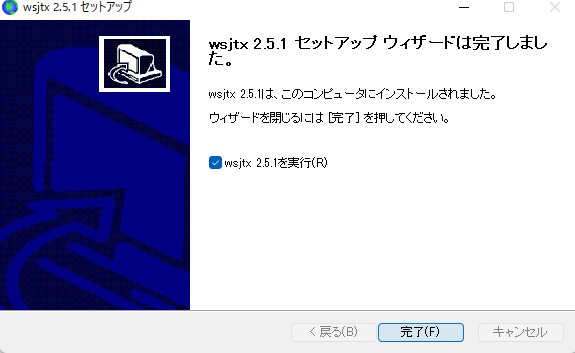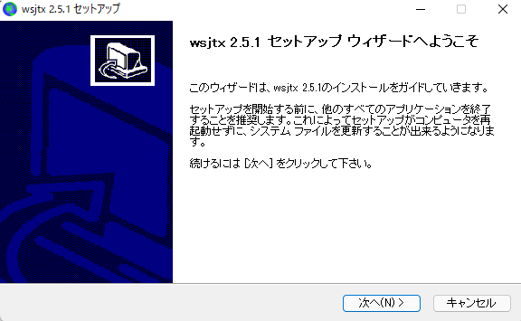 ダウンロードしたWSJT-Xをインストールします。正常にインストールが完了したら、WSJT-Xの設定を行います。