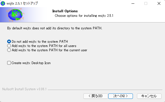 3.「Do not add wsjtx to the system PATH」にチェックを入れ「次へ」をクリックする。
