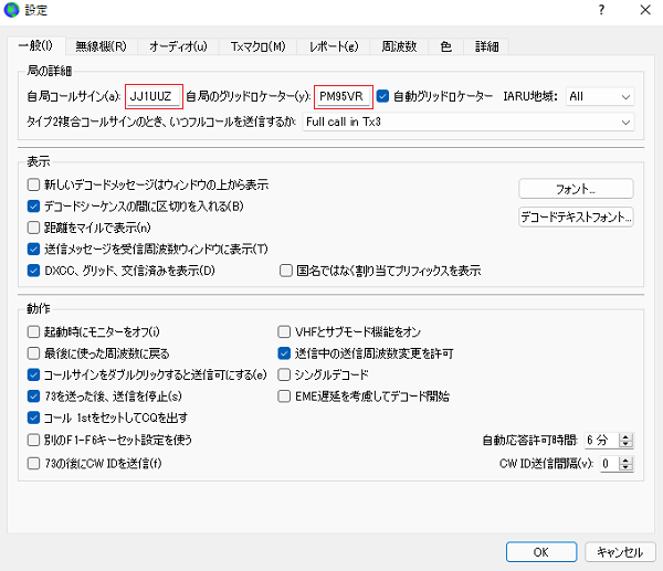 1.一般「General」は、コールサインとグリッドを設定します。